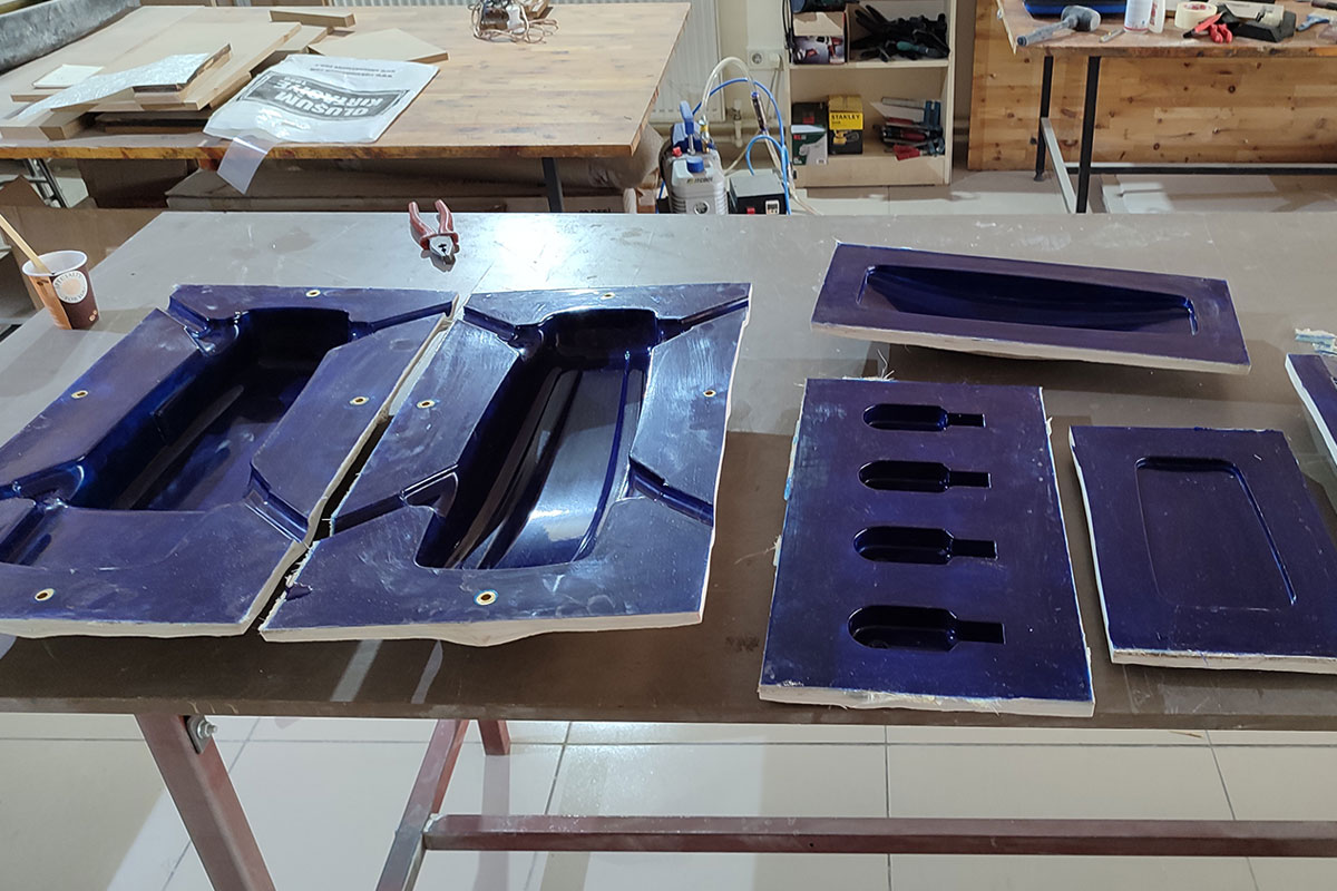 - Islak el yatırması ve vakum infüzyon için Sıfır-Çekmeli Polyester tabanlı kalıpar önerilir. Bu tür kalıplarla rahatlıkla 30 adet civarı ürün alınablir. Kalıp işi için en maliyet etkin çözümdür. Polyester kalıpları kesinlikle fırında kullanmayınız.